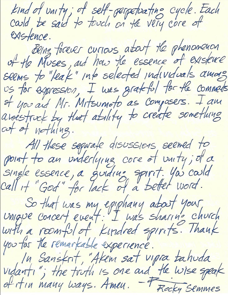 During discussion someone asked about the process of musical creation. The discussion turned to the role of inspiration in a creative process.